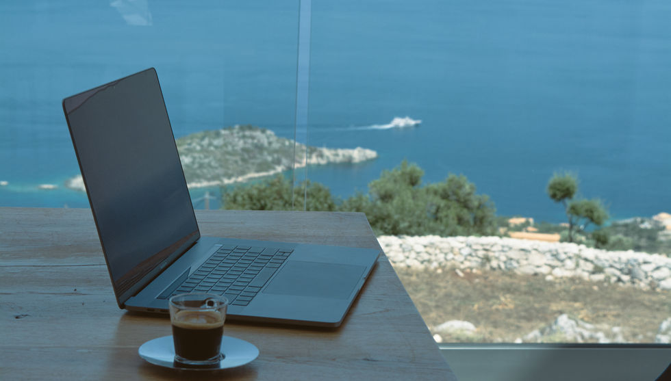 Work with view of the ionian sea